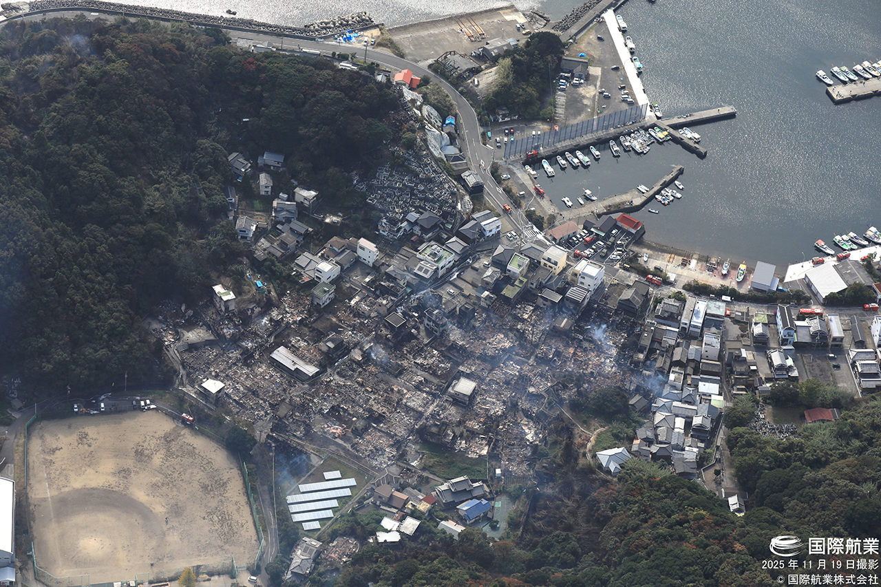 大分県大分市佐賀関において、令和7年11月18日の夕方より発生した大規模火災により、多数の建物等が被災しました。この災害に対して、弊社では緊急的に航空写真撮影を実施しました。