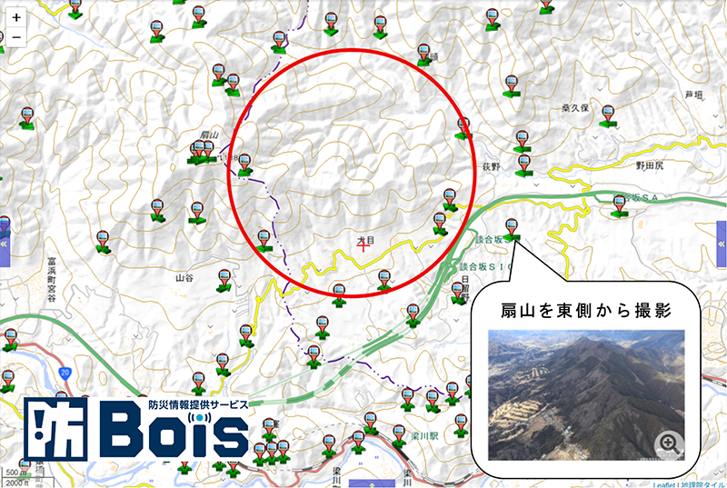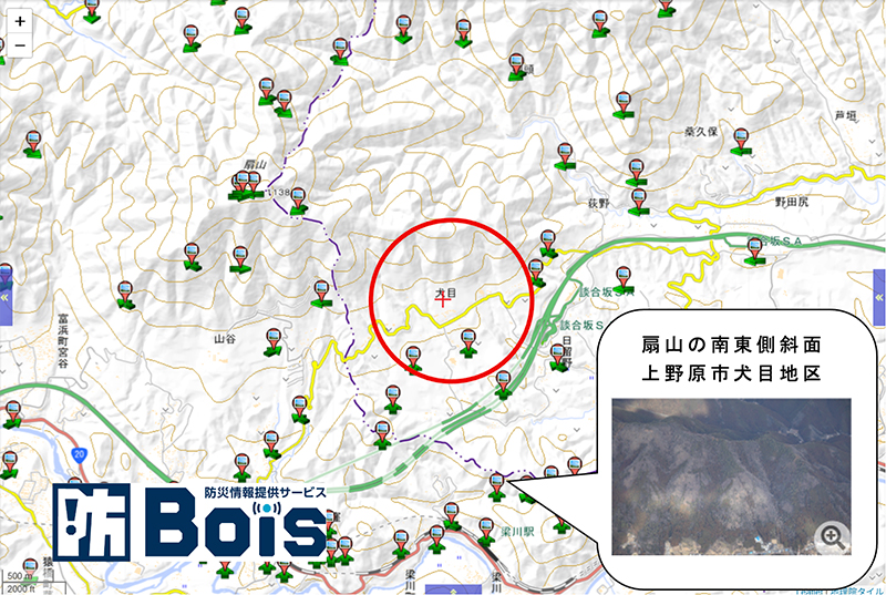 なお、国際航業株式会社HPの「災害調査活動への取り組み」の「無償版Bois/防災情報提供サービス」上にも掲載しておりますので併せてご確認ください。