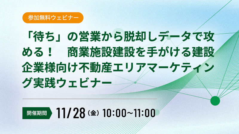 「待ち」の営業から脱却しデータで攻める! 商業施設建設を手がける建設企業様向け不動産エリアマーケティング実践ウェビナー