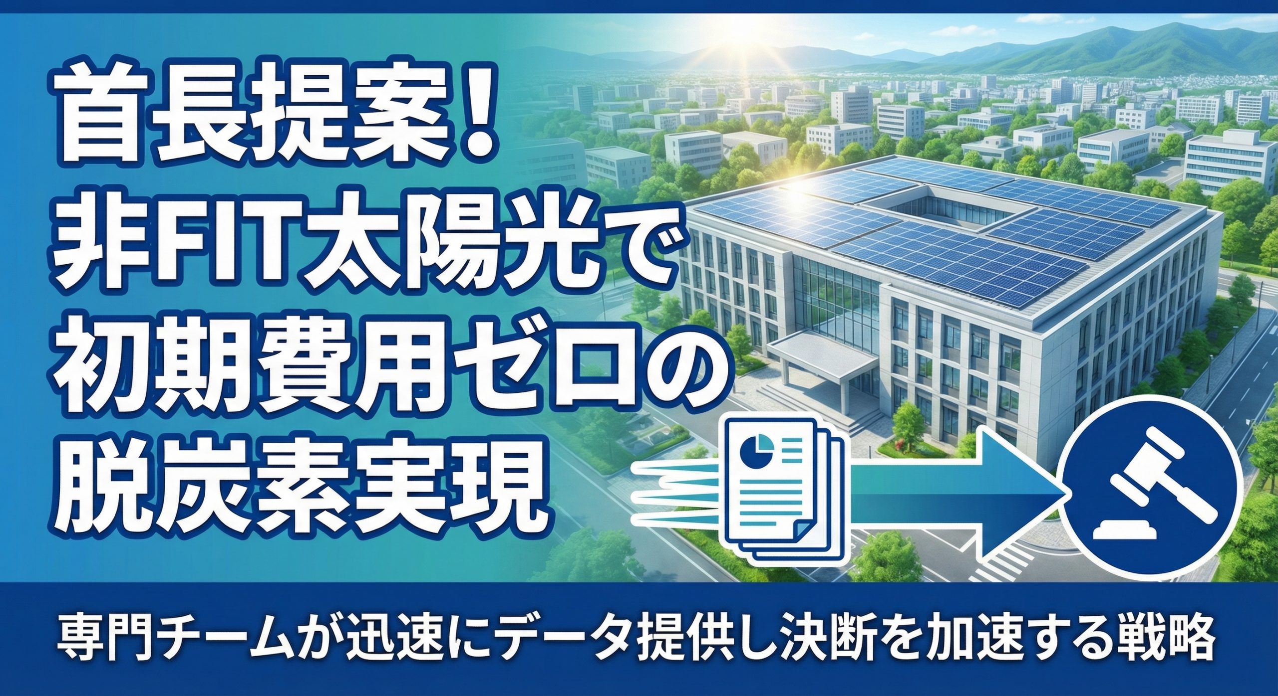首長の皆様。「脱炭素」という未来への投資において、「初期費用ゼロ」の非FIT PPA戦略は、財政リスクを回避し、自治体経営を安定させるための必須の選択肢です。