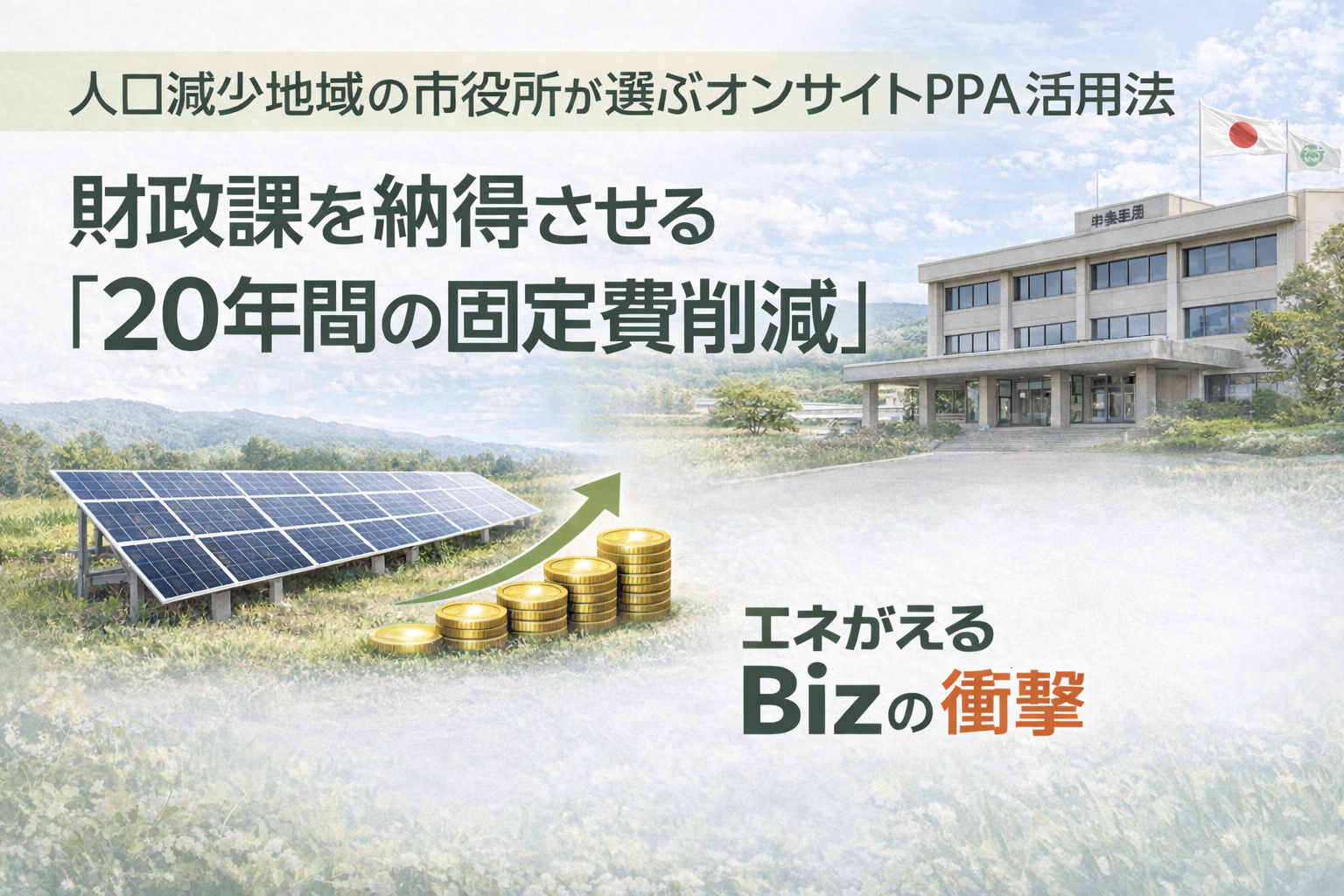人口減少地域の市役所財政課にとって、オンサイトPPAはもはや環境対策の枠を超えた「財務の防衛策」です。 「税収が減るから再エネは無理だ」と考えるのではなく、**「税収が減るからこそ、20年間の電力コストを民間の資本(PPA)で固定化し、不確実性を排除する」**という逆転の発想が必要です。