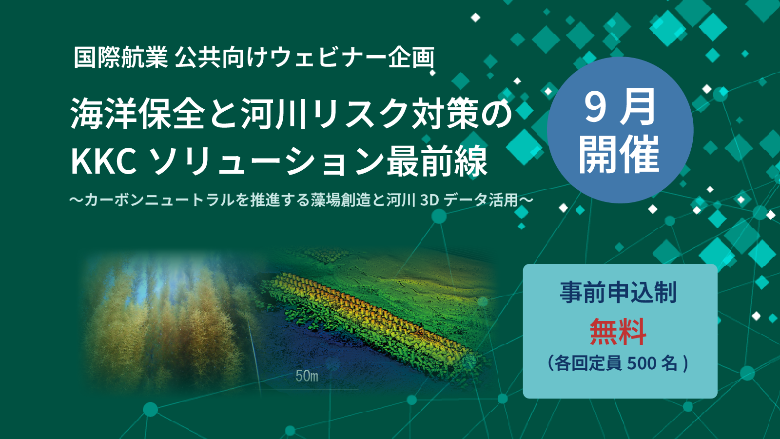 9月の公共向けウェビナーでは国際航業の河川海洋分野での先進的な技術と取り組みをご紹介します。第1回はカーボンニュートラルの実現に活用が期待される藻場創造・保全の技術を、第2回は3次元データを活用した河川管理の取り組みをテーマにウェビナーを開催します。