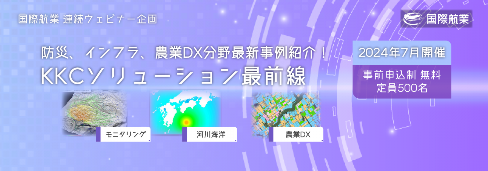 7月の連続ウェビナー企画では国際航業が提供するマルチモニタリング技術や河川海洋インフラ管理・防災技術、農業DX ソリューションについてご紹介いたします。
