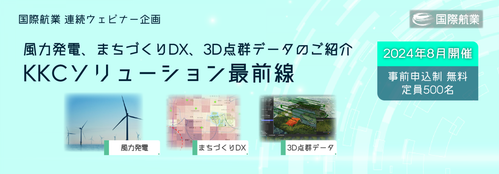 8月の連続ウェビナー企画では、風力発電導入支援サービス、まちづくりDXに向けたEBPMに基づく都市の分析、3D点群データの活用について、弊社の技術担当よりご紹介いたします。