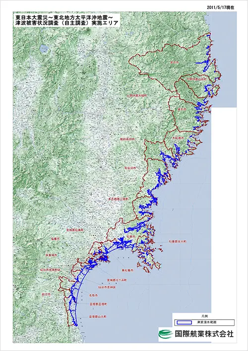 国際航業では、東日本大震災からの復旧・復興の一助となるべく、グループの総力を挙げて被災に関するさまざまな情報を収集、公開しています。 最終更新日 2011年7月19日